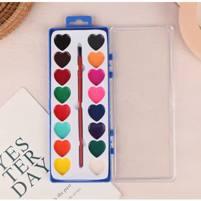 KNEODIO 16-Color Heart-Shaped Watercolor Paint Set – Vibrant Pigments, Portable Palette, Smooth Blend, Perfect for Kids, Students & Artists